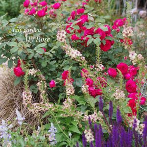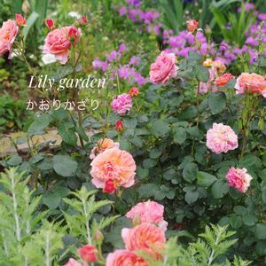 和バラのかおりかざりと主人母のジャーマンアイリスとコラボ♪ 6年前くらいはジャーマンアイリスの後にバラが咲いていた気がしますが今は同じ時期に咲いていて庭がジャーマンアイリスとバラで賑やかになりました♪