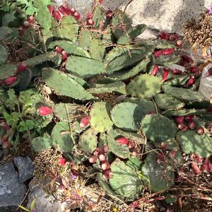 ウチワサボテンの実 食べられるそうですが棘をとったり皮を剥いたりけっこう大変らしい…。そして美味しいものでもないらしい…。 もう少ししたら取ります(ؓؒؒؑؑؖؔؓؒؐؐ⁼̴̀ωؘؙؖؕؔؓؒؑؐؕ⁼̴̀ )