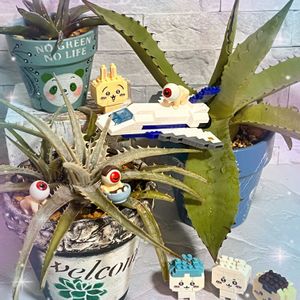ブロック祭り🏷️ 3周年に突入 🎊おめでとうございます🎊 お祝いの日なので いつもより賑やかpicで 投稿させて頂きます♪ 今日は公式で花の日だそうですので ブロックは セリアのフラワーシリーズ💐 海外品のひまわりアレンジ🌻 それから今回新しく DAISOのお店を作ってみました ブロック祭りも 他のイベントも こちらでお世話になってることが 本当に多いので 感謝を込めて✨✨ ワシたちが建設したんじゃ<(¯꒳¯)> と目玉オヤジたちと ちいかわたちも友情出演♪ 毎月7日はアガベの日🏷️ 勝手に7日は爪エッジ棘の日🏷️ この季節 アガベたちは元気いっぱい 忘備録さんのアガベの大きい方は 子株もだいぶ成長してきました 思えば親株の方も 2019.9に届き このくらいからのスタートでした🌱 王妃雷神白中斑は 今年は軒下の 直射日光が全く当たらない場所で その環境があってるみたいで 綺麗に育ってくれています 最後にもう一度 プチブロックのDAISO店舗で コラージュして遊ぼ♡🏷️ 商品名は「雑貨屋さん」となっています 細かいところが上手にデザインされていて 素直な形だから作りやすかったです☺️ そうそう 今日は「立秋」だそうですよ 毎日暑くて暑くて びっくりしかありませんでした😳 でも今朝早くに こちらも少し☔️が降りました それで今日は 少し暑さが和らいでるみたいです やっぱりたまには 雨も降らないとね でもほどほどに…ですね💦