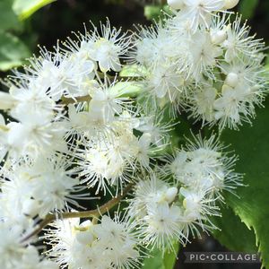 今朝 先程の池の端のサワフタギの親木 庭の奥のサワフタギも見てみると 先日は今年はお花が少ないのかしらと思いましたが ふわふわと随分咲いていました ただ枝葉の上に咲いているので余り見えません 足下に一輪だけ落ちていたお花も写して…