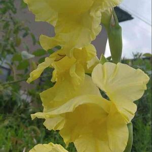 東北もやっと梅雨明け~☀ グラちゃん😆 なぜか1本だけ咲いてる……👀💦 淡いレモン色で可愛い😆👍❤
