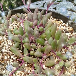 「雪童」 一寸多肉チャン❤ 98円 ひょろひょろチャンだけど、 新芽🌱発見👀💕 上はカット✂で挿し穂だな(笑)
