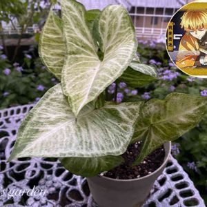 🌿今日のお花のシンゴニウム🌿 夕方、雨上がりに撮ったので薄暗いです😅 これは大きくなったり小さくなったりしながらも、もうかなり前から生き延びてます❣️ 先日、伸びきっていたので✂️して植え直したばかりですが、今日紹介出来て良かったね〜もっと大事にします😊 今日は鬼滅の刃の我妻善逸さまのお誕生日なのです🎂🎉 可愛くてカッコイイ💓 ryu-ryuさん主催の 🏷㊗️我妻善逸⚔誕生日に参加します。