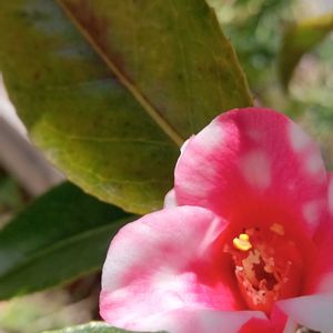 昨夕 夕日に照らされた 胡蝶侘助が綺麗でした💕 桃色と白色が混じり合った 小さな椿です✨