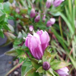 リンドウと 昨日の虹🌈です 見つけた時車中で直ぐに駐められず 次に全体の写るところまで 少しあったので くっきりが 薄くなりました きれいに橋の形がわかる 低い虹で こんな事は初めてだったので 撮りたかったぁ〜