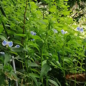 おはようございます⛅ こぼれ種のツユクサ 今日も益々元気です💪