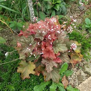 夏日が終わり最高気温が25℃まで下がりました。 秋の草花の出番ですね。 ヒューケラが生き生き。いい色になってます! 1枚目のヒューケラのピンクの花がとてつもなく可愛い!! 今日は朝7時前から2時間作業。オーニングを短くし砂利スペースも手を加え汗汗💦 2時間のオトモは「サンドラジオショーサタデー」😆