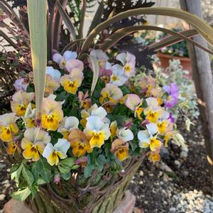 📝1/26 その後𓂃 𓈒𓏸𑁍 スイーツMIXビオラ 春っぽくお色直ししてます⸜♡⸝ 後ろのケールの勢いがスゴイ、、🥬