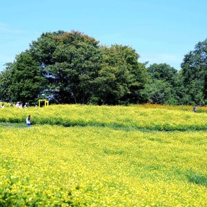 昭和記念公園、砂川口に近い花の丘は、キバナコスモスの黄色とオレンジに染め分けられていました💛🧡❤️ 黄色はレモンブライト🍋 オレンジは、背の高いオレンジの根元に、赤いキバナコスモスが植えられています🧡❤️ 🏷️日曜ビタミンカラー♪