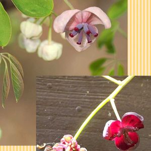 今日のお花 アケビ 上はアケビ 3月に東京薬科大学で📷 下はミツバアケビ 同じく3月に、調布市野草園で📷