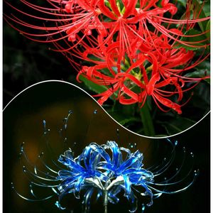 今日のお花 ヒガンバナ 上は一昨日、神代植物公園で📷 下は簪職人さんが作った青いヒガンバナ💙 雅叙園百段階段で📷 🏷️真っ赤な火曜日