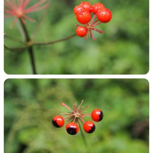 真っ赤な実をふたつ🔴 ↑トチバニンジン(栃葉人参) 栃葉は、トチノキの葉に似ているため🔴 ↓ソウシシヨウニンジン(相思子様人参)🔴⚫ この実が、相思子(トウアズキの生薬名)の実によく似ているため 先日行った御岳山で📷 🏷️真っ赤な火曜日 トチバニンジンとソウシシヨウニンジンは、実以外は変わらないそうです🤔