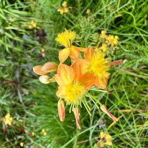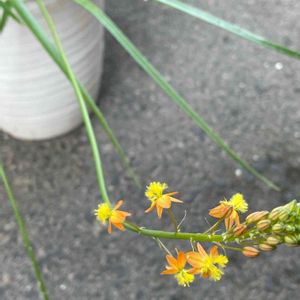 ブルビネ・フルテスケンス(花アロエ )💕 ビタミンカラーのお花♡ ベランダで他の植物の陰で見落としていました。 気づいたら咲いていました。