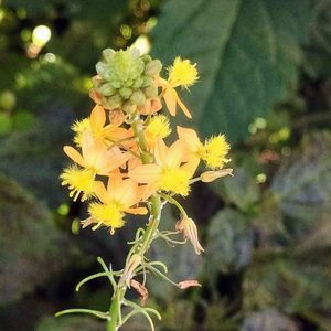 《ダンディ邸の庭に咲く花🌼》 ハナアロエ(ブルビネ・フルテスケンス)は 初夏に花茎を長く伸ばして、1cm程度の小さな花を咲かせます🌼 一日でしぼんでしまう短命な花ですが、次々と新しい花を咲かせるので、開花期間は比較的長いです。 花色は、黄、オレンジ、白などがあります。