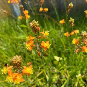 ブルビネ•フルテスケンス (花アロエ)💕 ビタミンカラーです。 黄色のふわふわ雌しべが可愛いです。 どんどん、咲き始めてきました。 今年も10月末位まで、楽しめるかな~