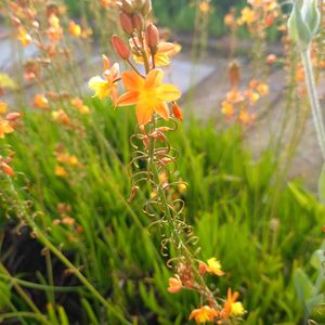 ①②弓ヶ浜のタライ岬へ向かう道で出逢った初めてのお花🧡💛 南アフリカを中心に約160種が分布する可愛いハナアロエ 名前の由来はオレンジ色の花をつけ、葉が多肉質でアロエに似ることから 花言葉は「復活」
