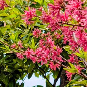 近所の駐車場に咲いている花桃の菊桃が満開です😊 花びらが菊みたいです💕