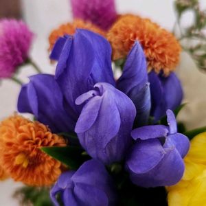 今日のお花 キク 🏷️カラフルな火曜日 リンドウも入ってるから 🏷️彩月 (いろどりづき)の青い花2025
