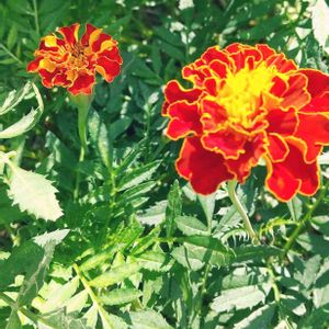 マリーゴールドのお花が陽射しが強い中で輝いてます❤😻 眩しい(*´つ_⊂`)ゾイ