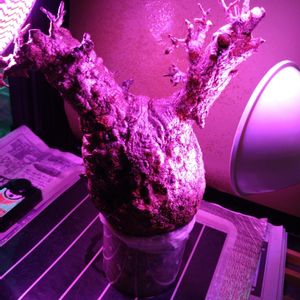 Operculicarya pachypus パキプスの発根管理をスタート。 3年ぶりの発根管理。 前回はうまく発根したけど、今回は成功するかな。 怪しいピンクライト(育成ランプ)と爬虫類用ヒーター、霧吹きを常備。 勘を取り戻しながら、楽しく頑張ります。