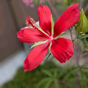 おはようございます😃 ❣️私の庭にて☺️❣️ ①モミジアオイ 🤳中、キチヨウ🦋が飛んできて止まりました😄 ②ダリア 前に頂いた土の中に2つあった種芋のひとつが咲きました😁 ❤️色でした😊もうひとつも蕾をつけてますが花色迄はまだわかりません😅 ③サルビア•コッキネア 溢れ種で、次々に開花してます☺️ ④カーネーション 前に母の日で頂いたのですが、暫く休眠してましたが、また、花が咲きました🥰 ⑤ニチニチソウ 種まきからの花で,白🤍ピンク🩷は前から咲いてましたが,赤花も2つ咲いて来ました😁 🏷️真っ赤❤️な火曜日参加します。