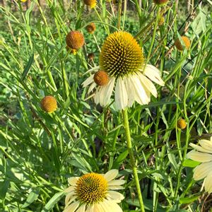エキナセア💛この子は夏が過ぎまた蕾をつけて咲いてくれています😊他のはお休みしています🍃自分で開拓した花壇なので土の状態もばらついていて、来年は土も豊かになればいいなと思います💦