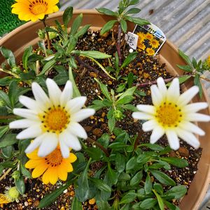 ガザニアの白も咲き始めました。正確には薄黄色だけど。
