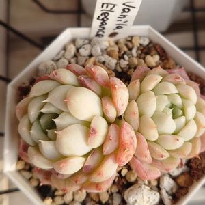 「バニラエレガンス」 エケベリア属 春に植えたのですが、夏の熱気で いなくなった子もいます。 もっと色白になる子達です。