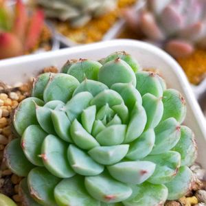 こんばんは🌙 多肉が⭐️になったりジュレ葉がたくさん出て気持ちも凹みがち😥 そんななか頑張ってる可愛い子もいます💕 左から(大きい子) ファイヤーフライ バニラエレガンス ムーンストーン 左から(小さい子) ミニマハイブリッド メビナ