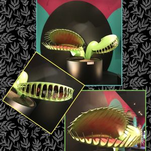 上野、国立科学博物館で開催中の特別展 植物〜地球を支える仲間たち 美しい?なぜ?こわい?めずらしい?楽しい!不思議?びっくり、くさい? 『本当は怖い写真たち』代表 巨大なハエトリソウの巨大模型がある。 捕らわれたハエのモデルもデカイ
