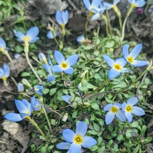 1/26(水)③ ようやく出会えました〜!! ヒナソウ💟💟💟 花友さんのpicで見て知ったお花…いつか出会いたい!!と思っていたら、HCで見つけ、翌日通勤路を変えたら花壇に咲いていました😄💟💟💟LUCKY!! 嬉しかったです。 💟ヒナソウ🤍 アカネ科ヒナソウ(ホウットニア)属 和名 雛草ヒナソウ 別名 トキワナズナ アメリカ(北米)原産 草丈3~5cm 花径5mm 花色 白、青紫色 十字型の小さな花は、花びらが4枚ではなく元が筒状につながる花が4裂しています。 耐寒性耐暑性に優れた常緑多年草です。
