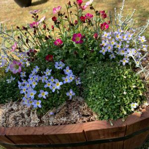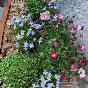 まだまだ満開のヒナソウ白チーム⭐️ ただこの山野草鉢全体で見ると終わりが近づいているようです。。🥺 クモマグサの花なんかは少ししかありません💧 ヒナソウ青チームも勢いは低下気味。。 なんか寂しいけど株分けしてこんなにもりもりになってくれたことに感謝💙 次シーズンは更にもりもりになってもらいたいなぁ♫