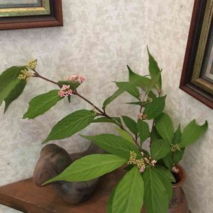 こんにちは^^💕 ムラサキシキブの実がたくさんなってきました。 今は緑色だけど 秋には紫色になります。 去年お迎えして 2年目… 去年はおチビさんだったけど 今年は随分大きくなりました。 その分 お花も実もたくさんです♡ お花もまだ時々咲いてますよ〜 楽しみがいっぱいです・。♪*( *´꒳`* )ルンルン