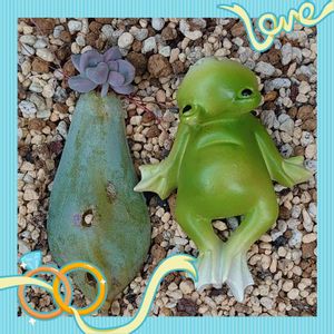 おはようございます٩(*´꒳`*)۶ 葉挿しの日参加します(⑅˘͈ ᵕ ˘͈ ) 名前不明のデカ葉挿し☘️ ・⌒ ヾ(*´ー`) ポイっとしてたら芽が出てた😂 🐸と同じ大きさの葉挿しはどなたなんでしょう〜σ(๑・Д・๑)?