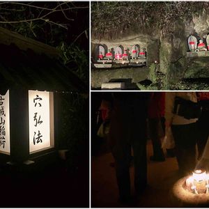 穴弘法(2) 歴史あるお寺の池に映りこむもみじや、竹灯りの光、岩穴に鎮座する100体余のお地蔵様等を地域ボランティアの方を中心に開催されています。