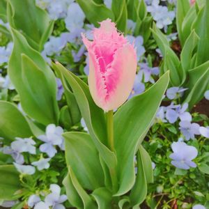 ポツンと咲いてるチューリップ🌷 周りの同じお仲間さんはまだ咲いてなく一輪だけ。 ちょっと淋しいだろうけど… 美しさ際立ち目立ってるよ♬