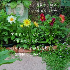 おはようございます(*^^*) 春に種蒔したダリア・フィガロミックスさんの開花も始まってますꔛᡣ𐭩˒˒ 色んなお色が入った種を蒔いたので咲くまでのお楽しみでしたが、 あとオレンジが咲くと揃いますჱ̒⸝⸝•̀֊•́⸝⸝) 可愛い1列になりましたꔛᡣ𐭩˒˒