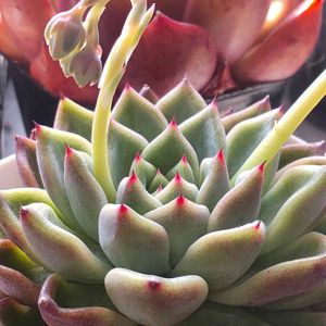 エケベリア・さくらんぼさんにも 可愛い花芽ちゃんが…😻💚🤍💗💛