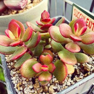「名無しちゃん」💦 なんだかとってもいい色になった、可愛い子です❣️ 多分、購入した寄植えに入っていた葉から育ったんだと思いますが、なんとも可愛い✨✨✨