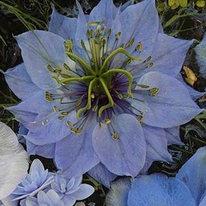 昨日ニゲラの水色も咲きました🌸 白より少し大きかった😃💙 一気にどんどん開花しています😊🎶 🏷青い花マニア💙 🏷青い春の花マニア🌸 🏷青いキンポウゲ科マニア