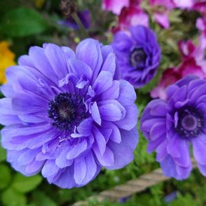 🏷美しく青きドヨウ 紫色八重咲きアネモネの花、綺麗です💕