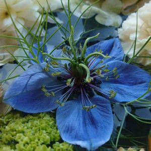 今日のお花、ニゲラです😊 クロタネソウ属は、キンポウゲ科の属の1つである。学名の「ニゲラ」としても知られています。学名は黒いという意味のラテン語Nigerが語源となっています。南ヨーロッパ、中東、南西アジアに自生する一年草で、花の色は白、青、黄、ピンク色、薄紫など。原種の花弁の数は5〜10枚。葉は細裂します。