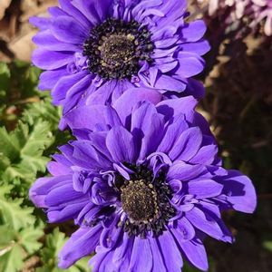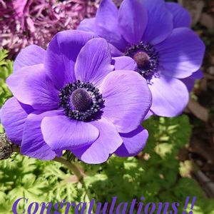 (祝)チーム・ブルー1周年 紫色の八重咲きアネモネの花、二つ並んで綺麗です✨✨ 💙💜チーム・ブルー ㊗️すずさん 1800picおめでとうございます💐🎊🎉🌹🍀 これからもチーム・ブルーでご一緒に青い花探しをしましょうね💐