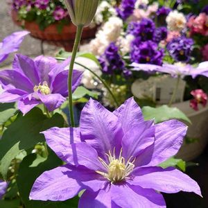 おはようございます🌅 先週新しいクレマチスをお迎えしました😊💙💜 H.F.ヤングは大輪のクレマチスで、四季咲き性が強いので春から秋まで長い間花を楽しむことができます。花つきの良い早咲き種です。 タイプ:キンポウゲ科の耐寒性落葉多年草(つる性) 草丈:2m 花径:15cm 花色:青紫色 開花期:4月~10月 🏷(祝)チーム・ブルー1周年