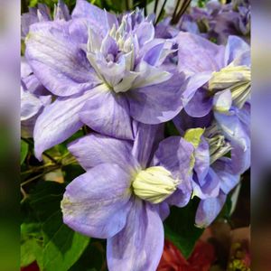 おはようございます😊🌄 🏷青い花で秋祭り2022 🏷美しく青きドヨウ 薄紫色の八重咲きクレマチスの花が綺麗です💜🌿 キンポウゲ科 クレマチス属 🏷青いキンポウゲ科マニア