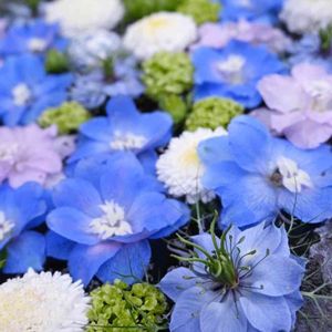 チーム・ブルー💙 ㊗️きなこさん 1000pic おめでとうございます💐🎊🎉✨ デルフィニウム アクアブルー💠🌿 大輪で透明感のあるライトブルーの花を咲かせるわい性のデルフィニウムです。 花に距がないため、花が上を向くのも特徴です💙🌿✨ 私のきなこさんのイメージ、清楚で可愛らしいお花なので選びました😳 これからも素敵なpic楽しみにしています😊💕