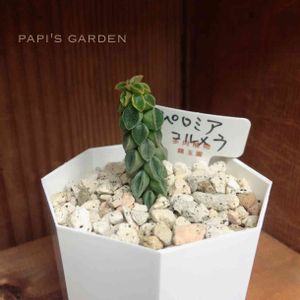 🌵ぺぺロミア コルメラ🌵 コルメラに出会いました!😉 お花も咲いてて1ポット5本入り!😀 2本並んでかわいいな😍そっくりだね🍀 私の知っているペペロミアのお花に似てるかなぁ〜😉 変わった姿のコルメラ生産者に水のやり方をよく聞いてきました❤️ 親株を見せてもらったらすごく大きくて驚きました👀もしゃもしゃでした!👀❤️ 夏越し気をつけようっと!❤️🎵