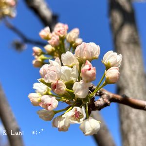 最近咲いてる果物系のお花を集めてみました。 ① カリンの花です。コロンと優しいピンクがカワイイ💕 ② マメナシの花です。実は渋くて美味しくないそうです😅 ③ ジューンベリーの花です。ソウルの森にも何本かあります。 ④ アケビの花です。ソウルの森の隅のスミ、人がほとんど来ない所でこっそりと咲いています。実は見たことないです😅 ⑤ナシの花です。花より青空が…💙