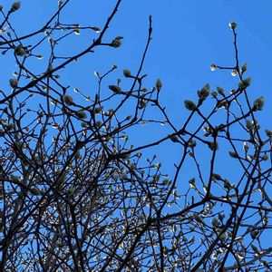 3月12日撮影 モクレンの木の全体の様子。 あれ?1本の木だと思っていたけれど 何本もあった??? 調べてみると、ハクモクレンは樹高が20mにもなる高木で単幹で幹が太くなりますが、モクレンは4〜5mほどの中高木で株立ちになりやすいそうです。 これは株立ちになっているんですね。 明日、確かめてみよう☺️ モクレン(木蓮・紫木蓮) モクレン科モクレン属 去年は3月14日にもう咲いていましたよ。 今年はもう少しかかりそうです。 (3月13日更新) 見てきましたー。株立ちではなかったですよ!! やっぱり一本の木でした🥰 どうしてこんなに枝分かれしてるの!? …というと…。