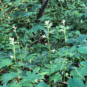 モミジガサ(紅葉笠) 花期は8〜9月 春 茎先の葉が展開しないものは、シドケ と呼ばれて山菜として食用にされる 岩手県室根山